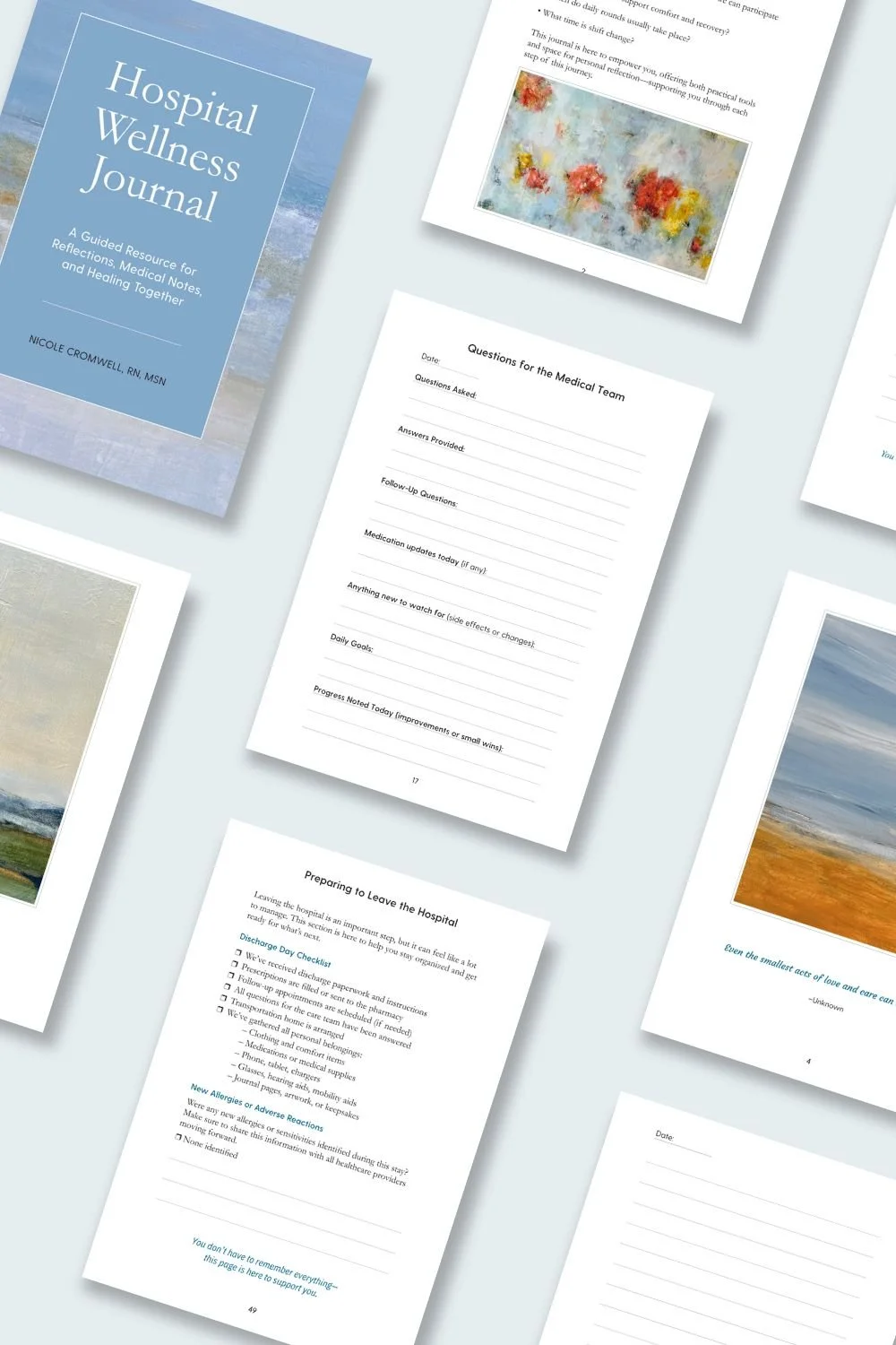 Based in Carmel by the Sea, California, Nicole’s journey from bedside care to full-time artist has deepened her understanding of how creativity can bring comfort and strength. Her artwork, featured throughout this journal, is crafted to evoke calm and hope, offering families a visual touchstone of healing.